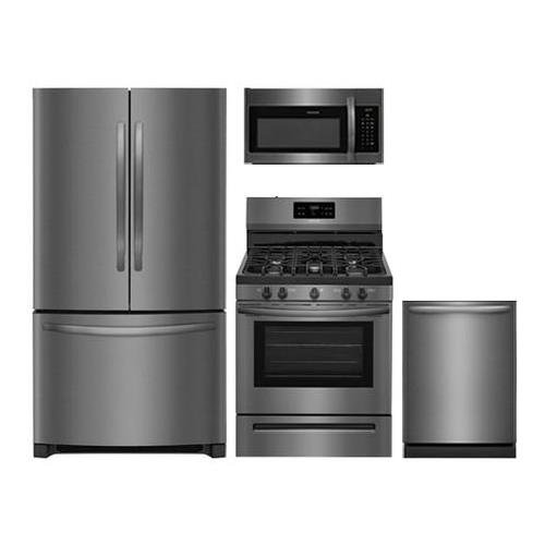 Above this is the one of the product images of the Frigidaire 4-Piece Black Stainless Steel Kitchen Set FFHG2250TD 36 French Door Refrigerator, FFGF3054TD 30 Gas Freestanding Range, FFMV1645TD 30 Over-the-Range Microwave and FFID2426TD 24 Ful. To get other pictures, you can click on the image above.