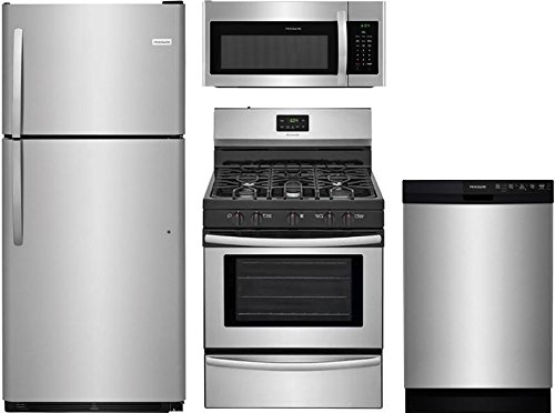 Above this is the one of the product images of the Frigidaire 4-Piece Stainless Steel Kitchen Package With FFTR2021TS 30" Top Freezer Refrigerator, FFEF3052TS 30" Freestanding Gas Range, FFMV1645TS 30" Over the Range Microwave, and FFBD2412SS 24" Full. To get other pictures, you can click on the image above.
