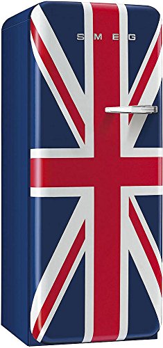 Above this is the one of the product images of the Smeg FAB28UUJL1 24" 50s Retro Style Top-Freezer Refrigerator with 9.22 Cu. Ft. Capacity Ice Compartment Interior Light Adjustable Glass Shelves and Bottle Storage in Union Jack: Left. To get other pictures, you can click on the image above.